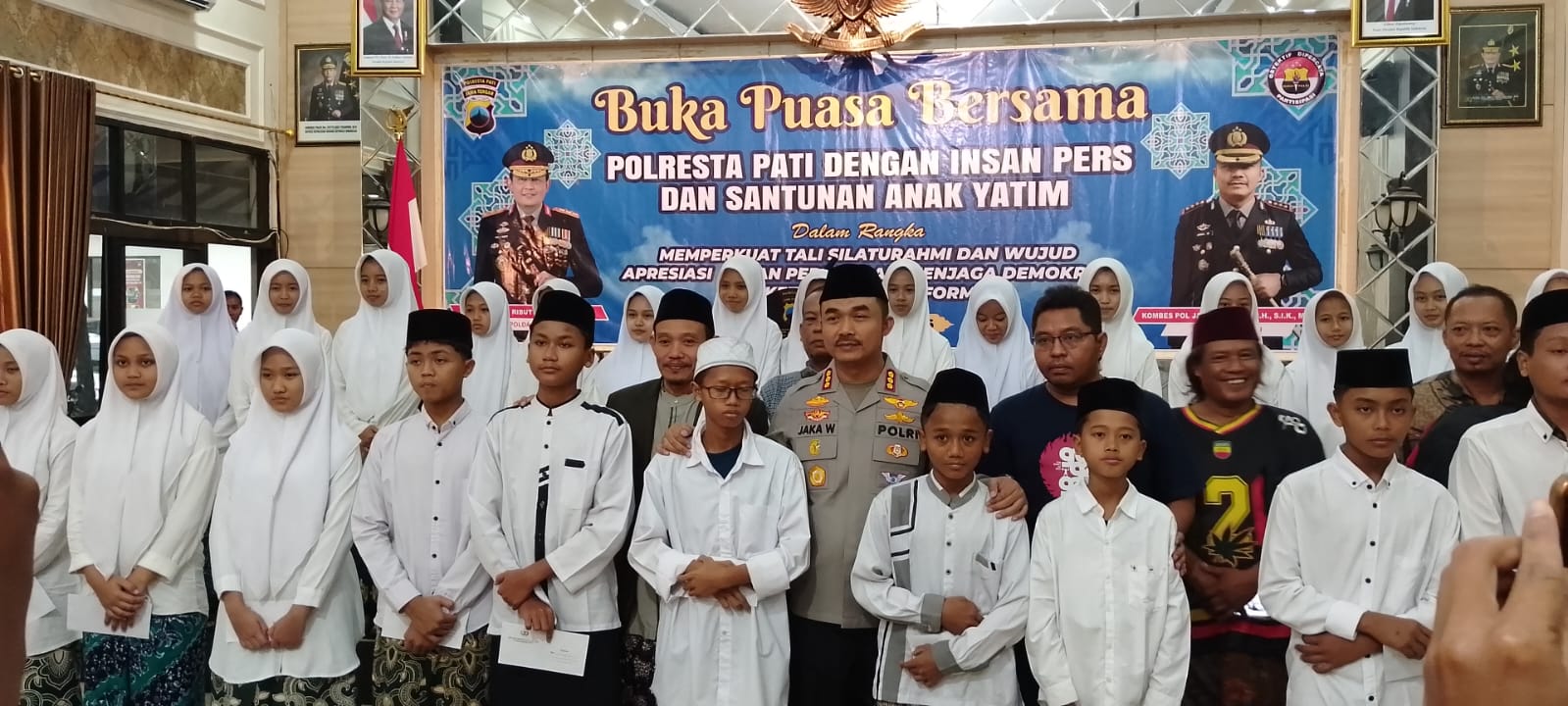 PATI I Suasana hangat ramadan terasa kental di Mapolresta Pati, saat Kapolresta Pati, Kombes Pol. Jaka Wahyudi menggelar buka puasa bersama insan pers dan santunan anak yatim, Rabu (25/2/26).